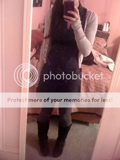Underneath the coat. I got the dress and tights from my cousin. I love when she gets rid of clothes. It feels like Christmas!